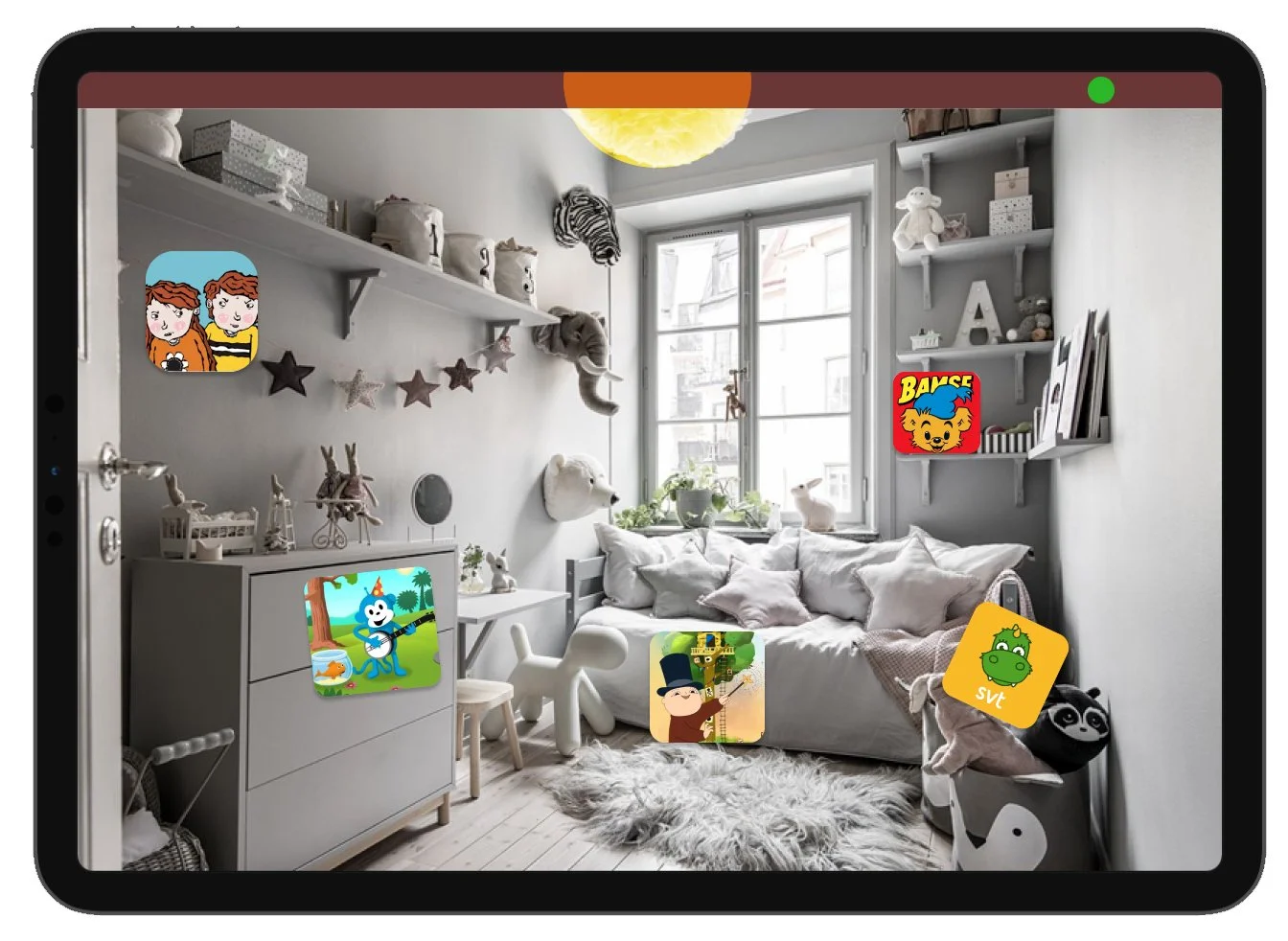 A designed portal that you and your young child fill with entertaining games. Together design the room and choose appropriate apps that feels safe and fun to play with!